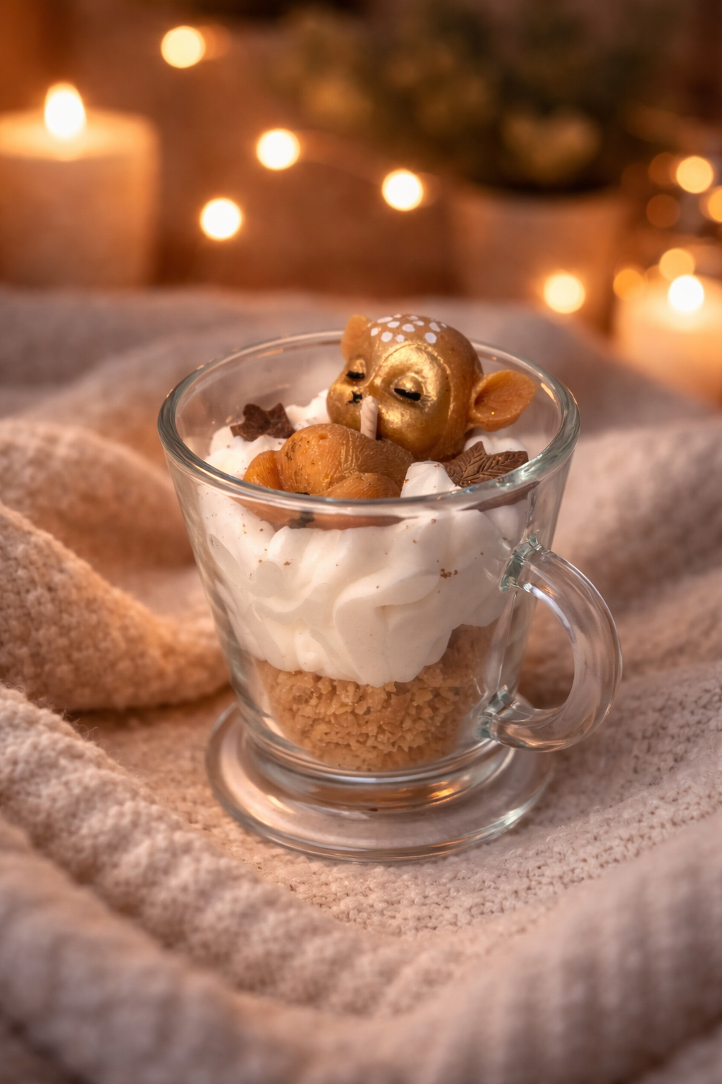 Chaque bougie étant réalisée à la main, de légères variations de couleur, de poids ou d’aspect (notamment de la chantilly) peuvent apparaître. Ces différences font partie du caractère artisanal et rendent chaque bougie unique.